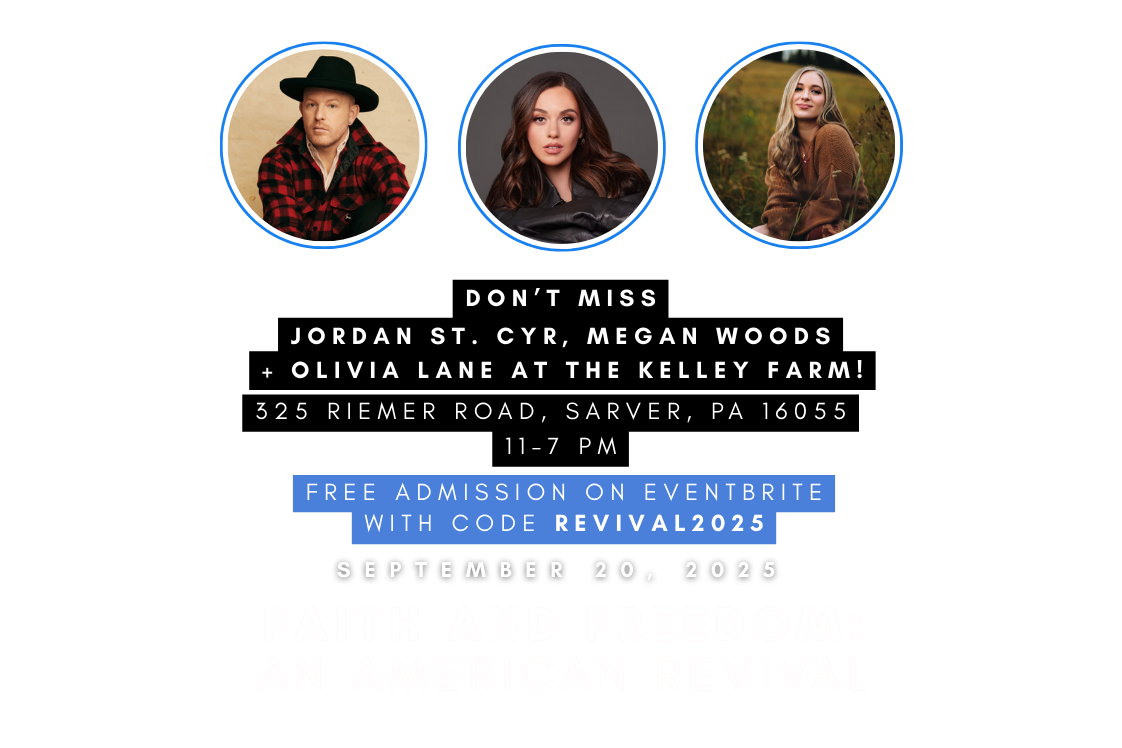 Admission is free with the code Revival2025, and VIP “Friends of the Farm” tickets are available for $100, offering special guest access, front row seating, snacks & refreshments. General Admission ticket holders don’t forget your lawn chair – we’re doing this outdoors, rain or shine.